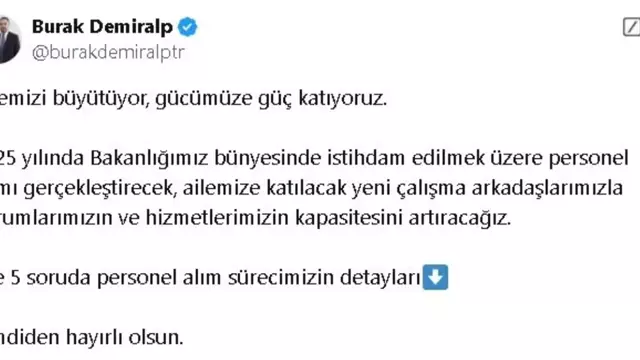 Devamını Oku - 15.12.2025 - 07:23 Bakanlığa 3 bin personel alınacak! İşte başvuru şartları ve alım yapılacak kadrolar Haberler.com