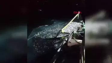 Elazığ'da balıkçılar, Keban Baraj Gölü'ne düşen dağ keçisini kurtardı. O anlar görüntülendi.