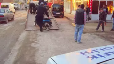 Çorum Osmancık'ta ilçe Emniyet Müdürlüğü Trafik Tescil Büro Amirliği trafik polisleri uygunsuz plakasız motosikletlere uygulama yaptı.