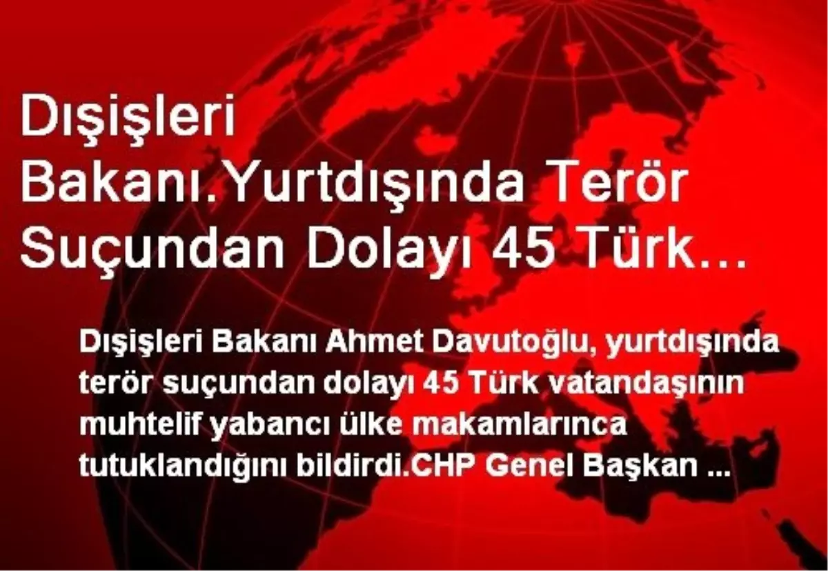 Dışişleri Bakanı Ahmet Davutoğlu, yurtdışında terör suçundan dolayı 45 Türk vatandaşının muhtelif yabancı ülke makamlarınca tutuklandığını bildirdi.