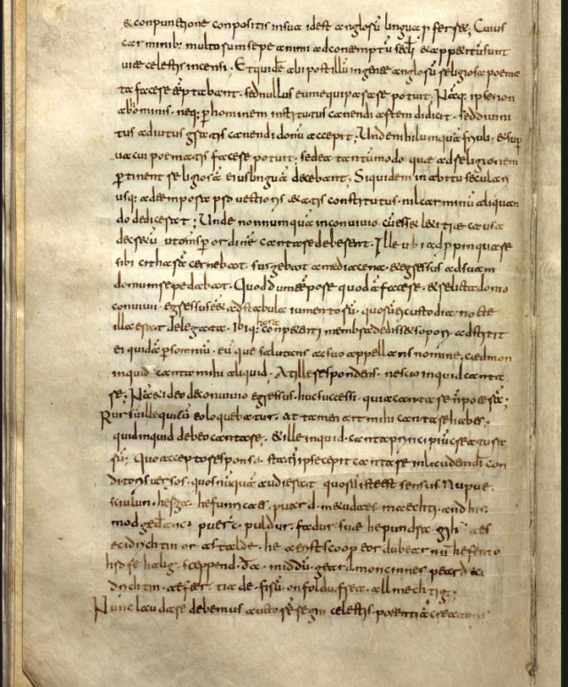 Orta Çağ tarihçisi Bede’in “İngiliz Halkının Kilise Tarihi” adlı eserine göre, 7. yüzyılda Whitby Manastırı’nda yaşayan çoban Caedmon, Tanrı’ya övgüler içeren bu şiiriyle İngiliz edebiyatının ilk şairlerinden biri olarak kabul ediliyor.