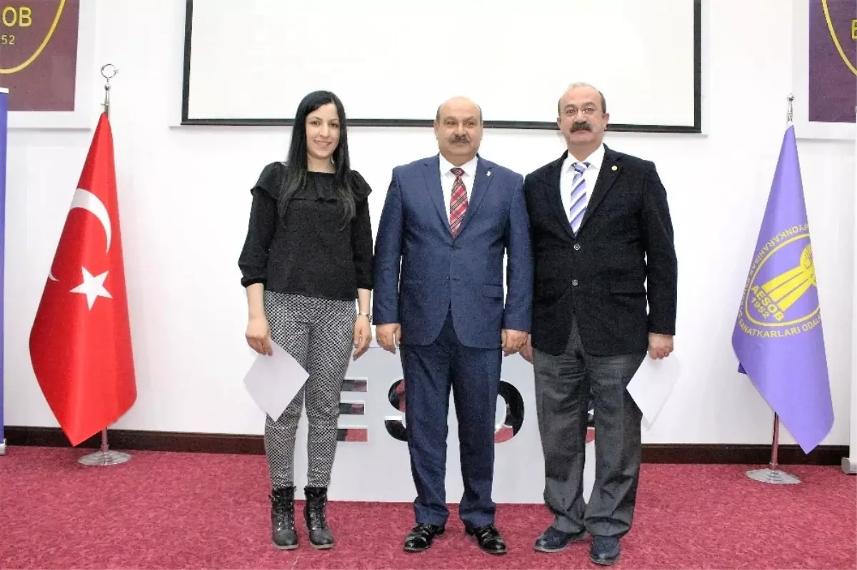 ESOB'da düzenlenen girişimcilik kursu sertifika törenine KOSGEB İl Müdürü Mustafa Çanakçı, Çalışma ve İş Kurumu İl Müdürü Ahmet Karakaya ile esnaf odaları başkanları katıldı.
